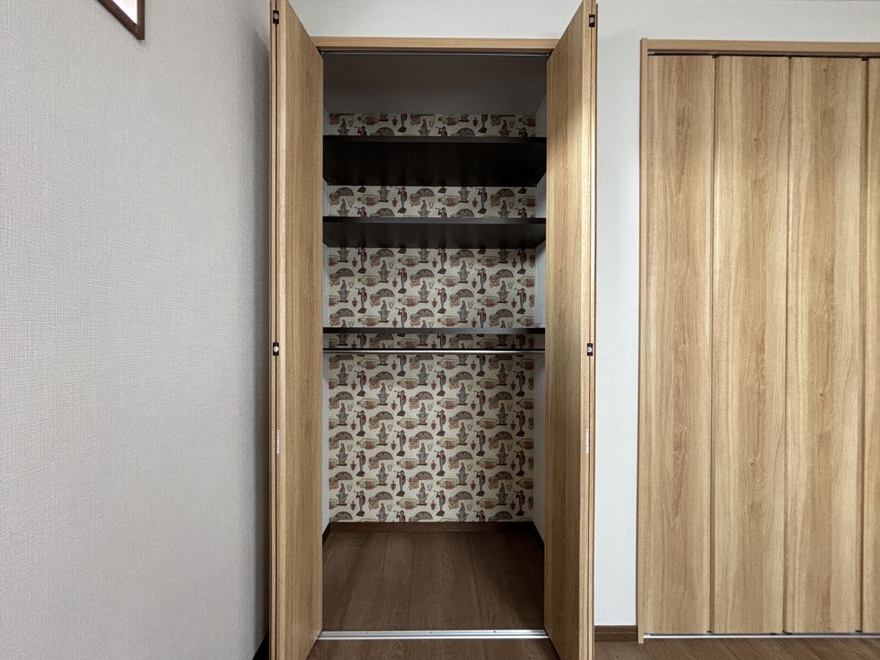 6畳洋間のすぐ横に収納があるので布団はもちろん、細々した物もしまっておけて