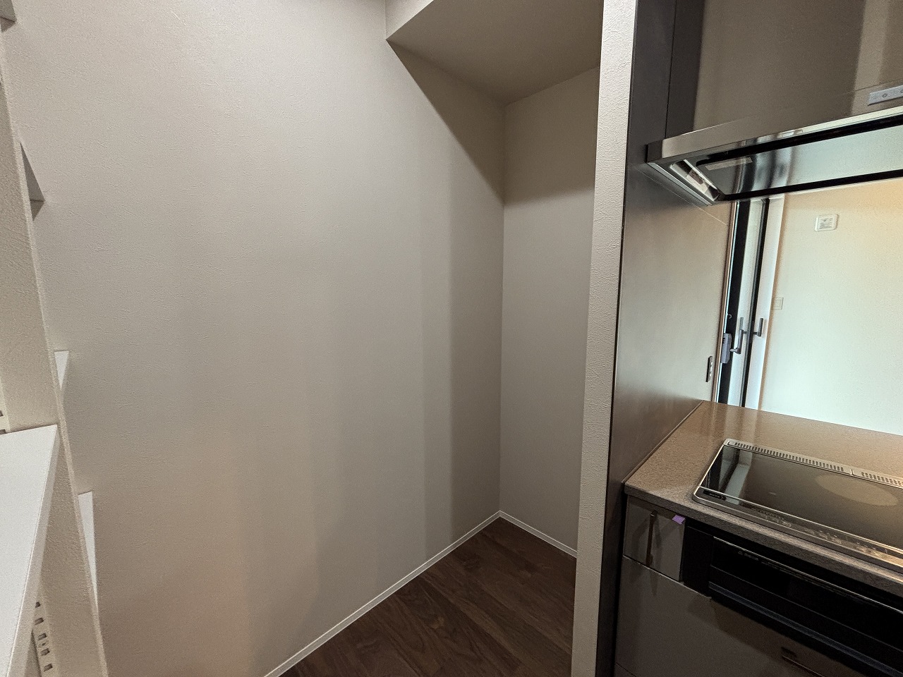 反対側から見るとこんな感じになっていて、コンロの左奥に空間がありますね。
