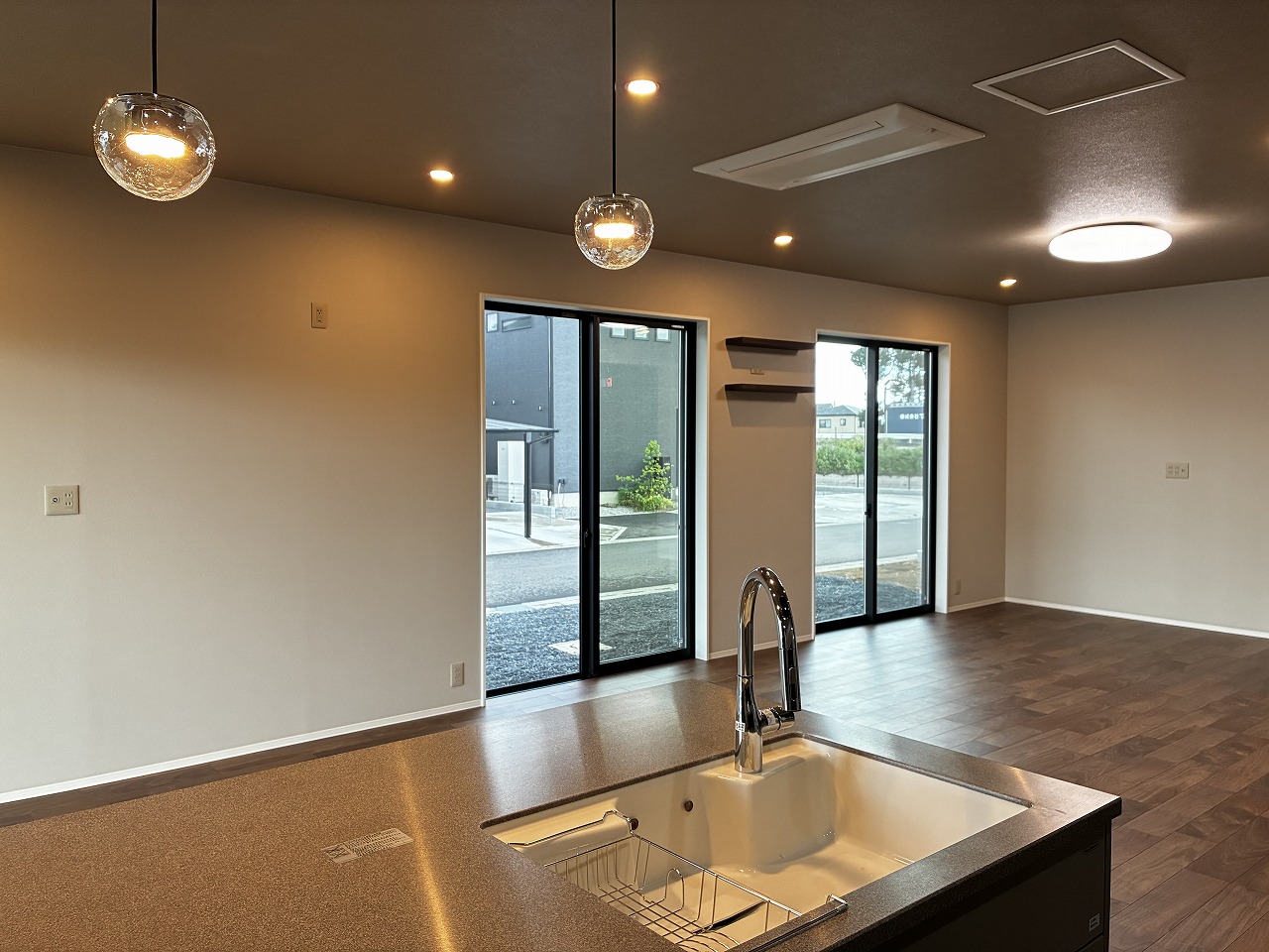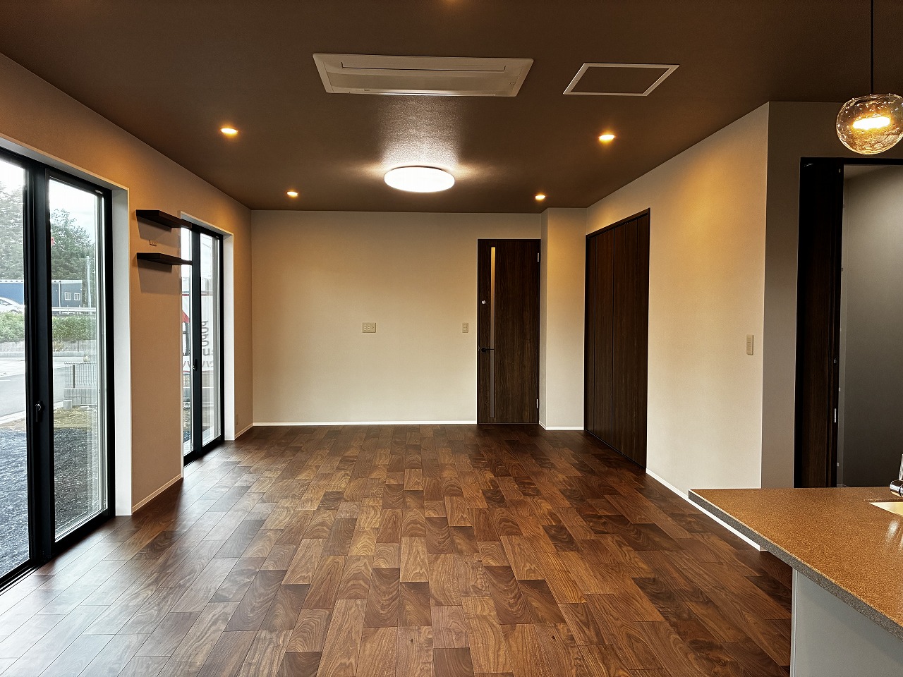 リビング側に目を向けると、大きな掃き出し窓が2つ。