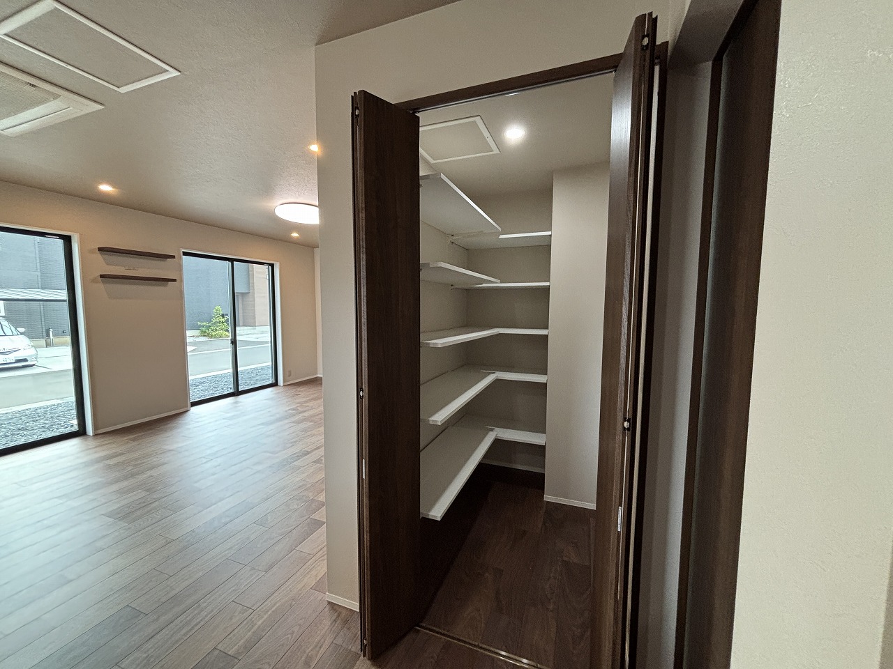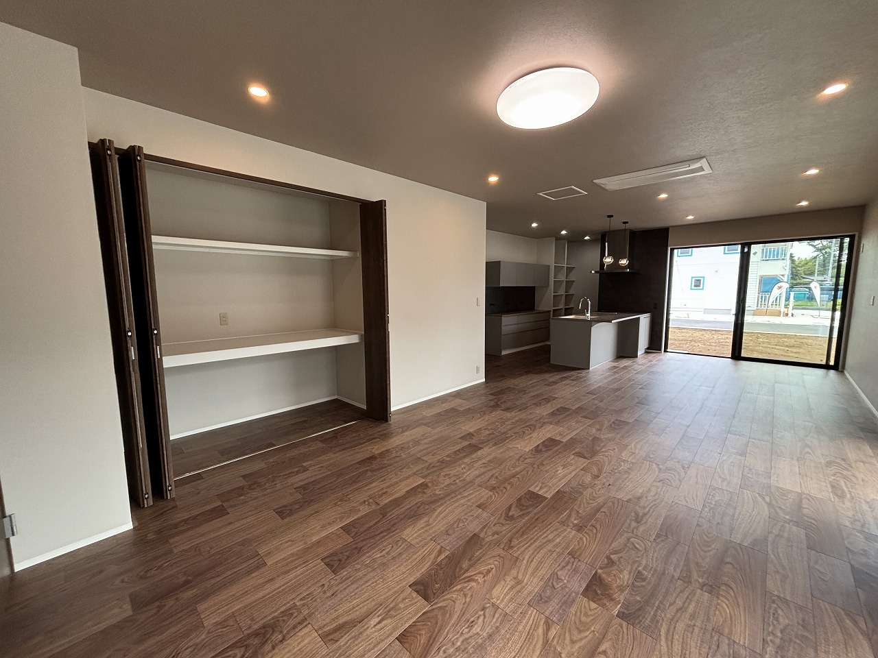 リビング中心のライフスタイルなので、収納は大きめに設けてあります。