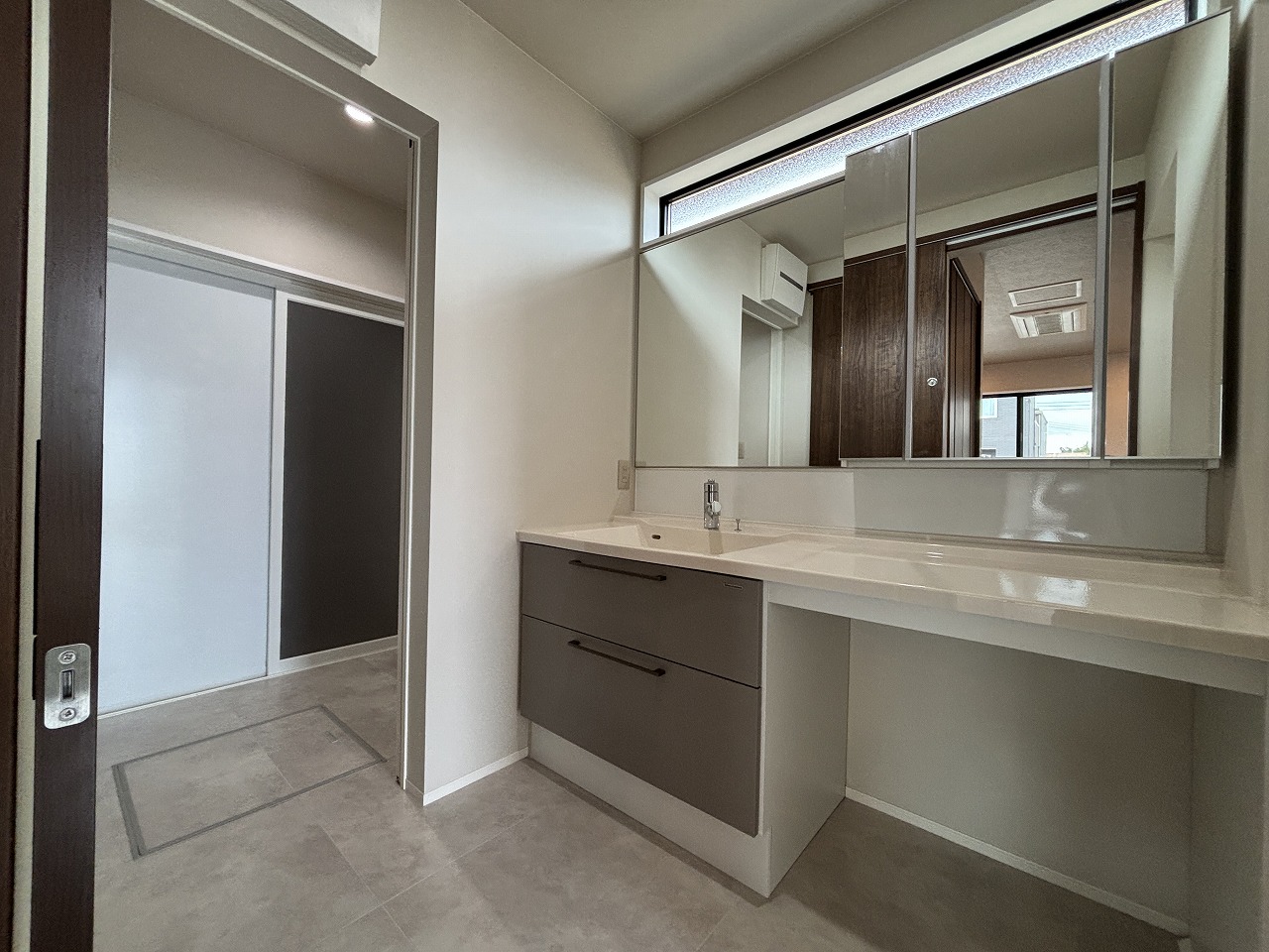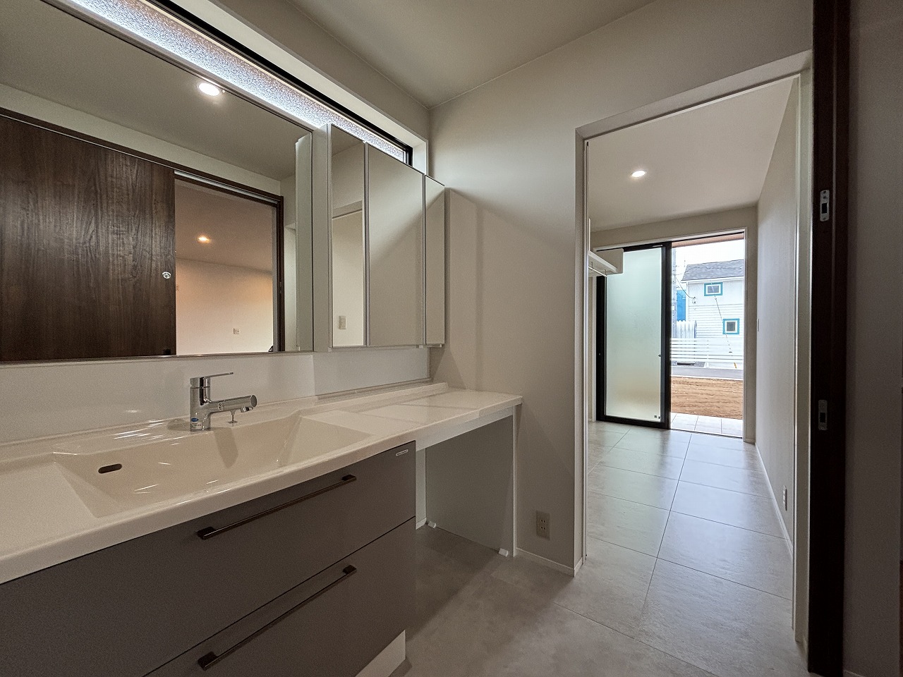 洗面所と脱衣所を仕切ってあるので、家族の誰かがお風呂使用中でも洗面所を使えて便利です。