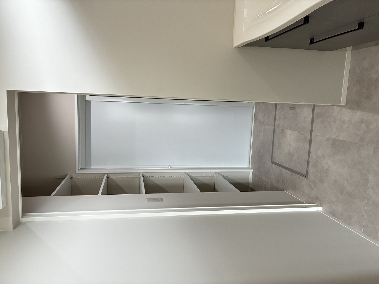 カップボードの右奥は、可動棚を設置してパントリースペースに。
