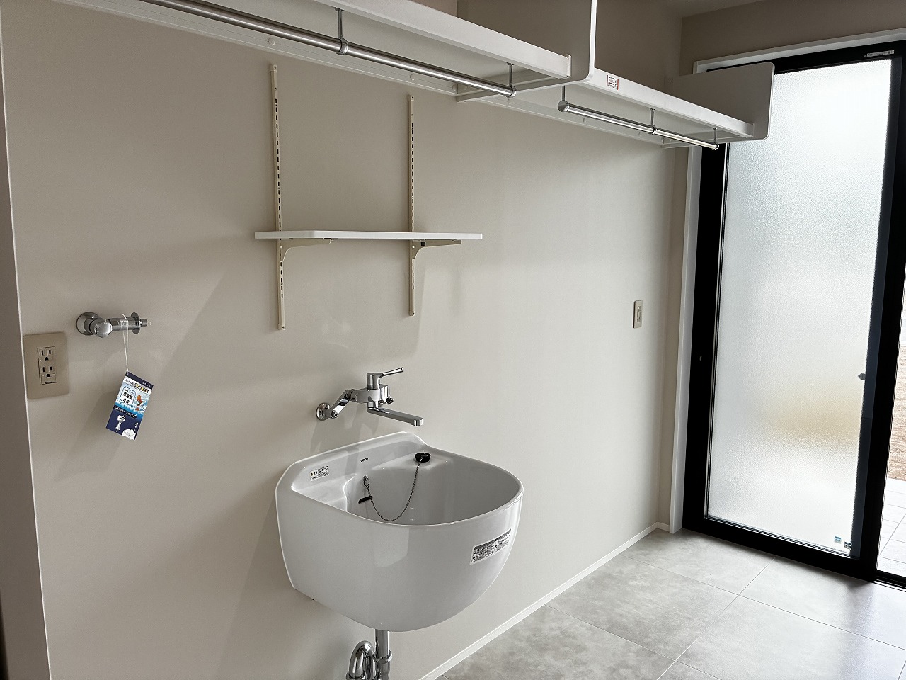 洗濯はもちろん、深型シンクで靴を洗ったり、カウンターを設置してアイロンがけをしたり