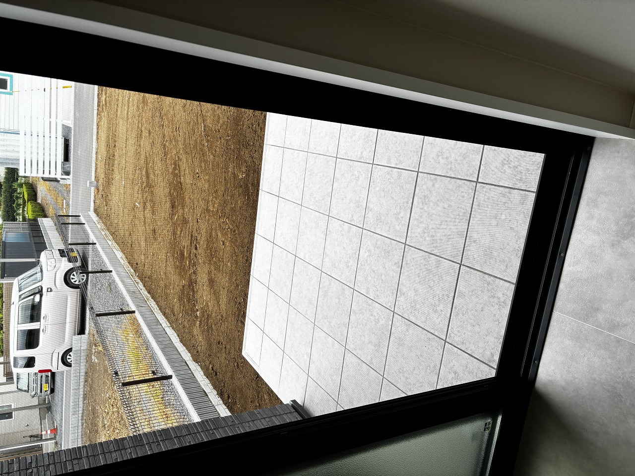 掃き出し窓の向こうには、タイルデッキを敷きました。