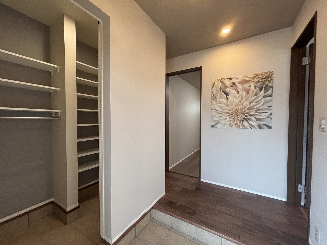 正面奥は玄関ホールにつながるドアで、右側の折れ戸は収納です。